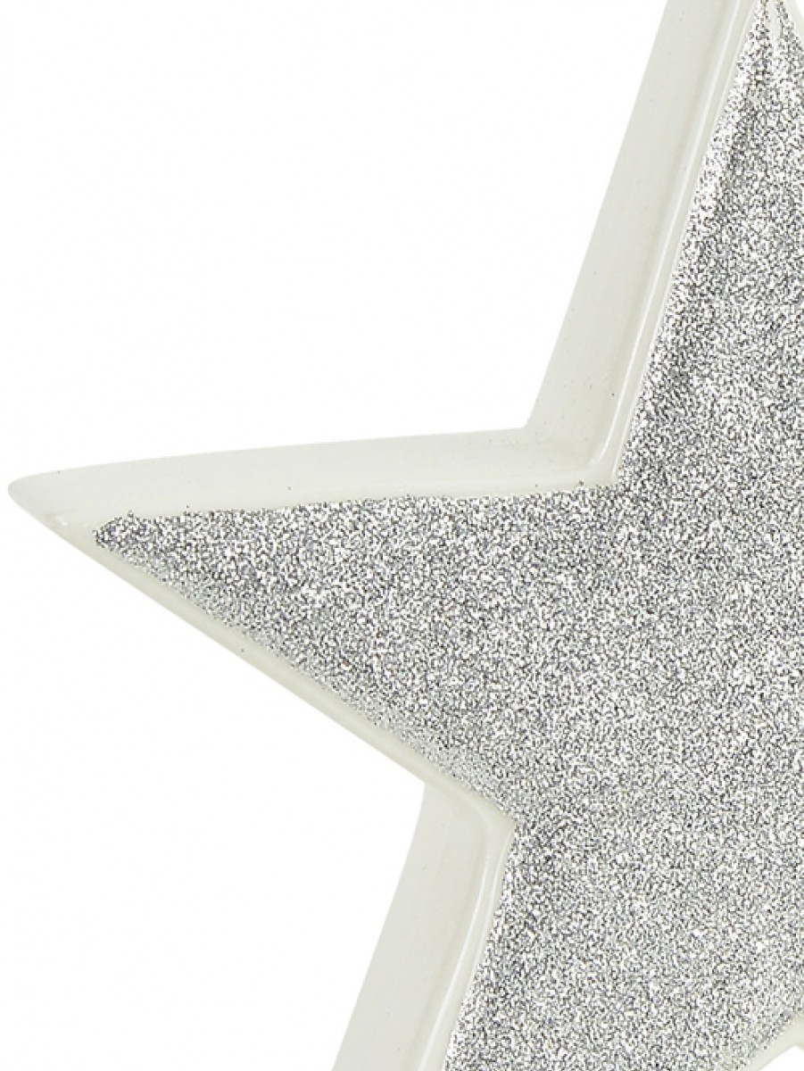 Our white ceramic with silver glitter ornament is designed to shine and stand out in any home environment this winter season. Well made with a white ceramic star body that is embossed with glittered detailing, this freestanding star is perfect for accentuating any Christmas tree or decorative mantelpiece.