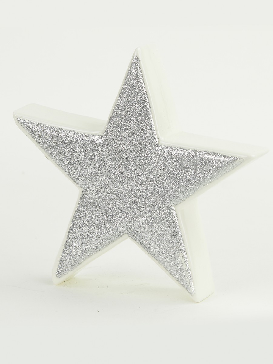 Between its colouring and design, this White Ceramic With Silver Glitter Free Standing Star Ornament is going to be a decorative item that you can use throughout the Christmas season and take it into the rest of the year. Whether you're keeping it in its superb condition or you're going to add your own embellishments, this piece can be beneficial to the style in any room of your home.