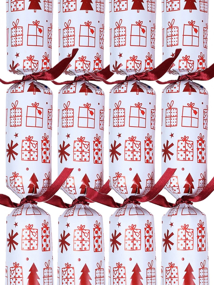 White With Various 2D Christmas Presents Cracker Bon Bons - 12 X 25cm