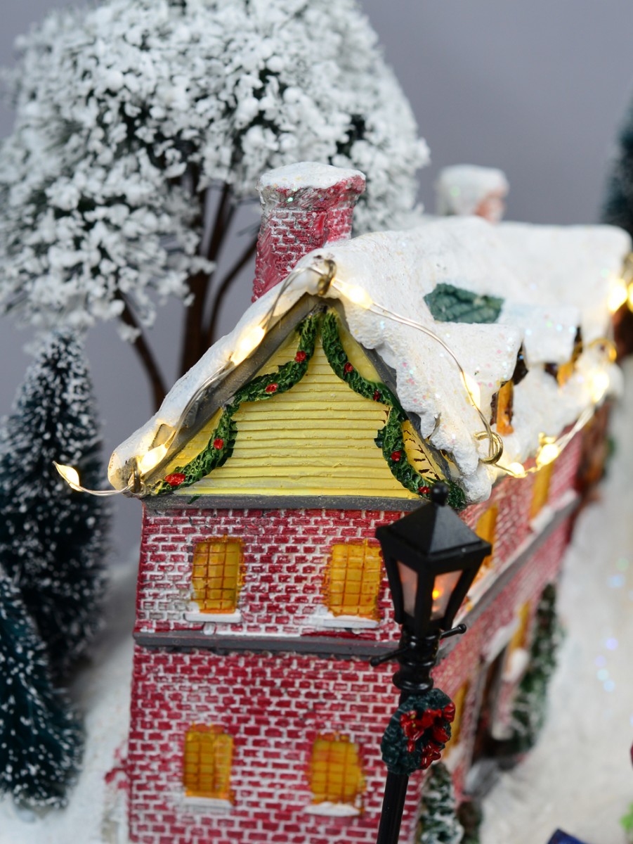 This vibrant musical northern winter street scene Christmas ornament will make a striking piece by adding a pop of color to your decor.