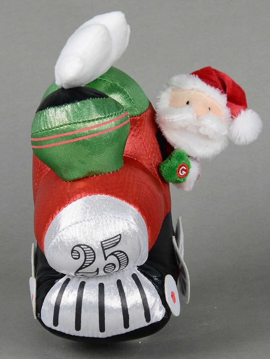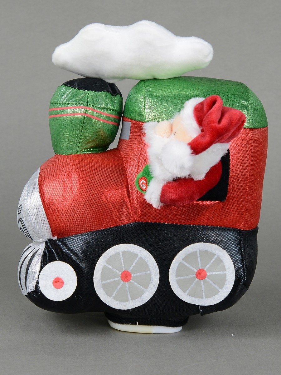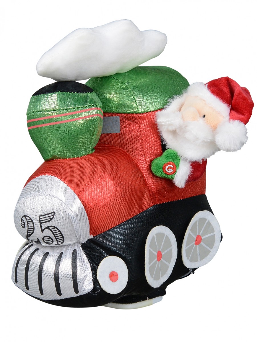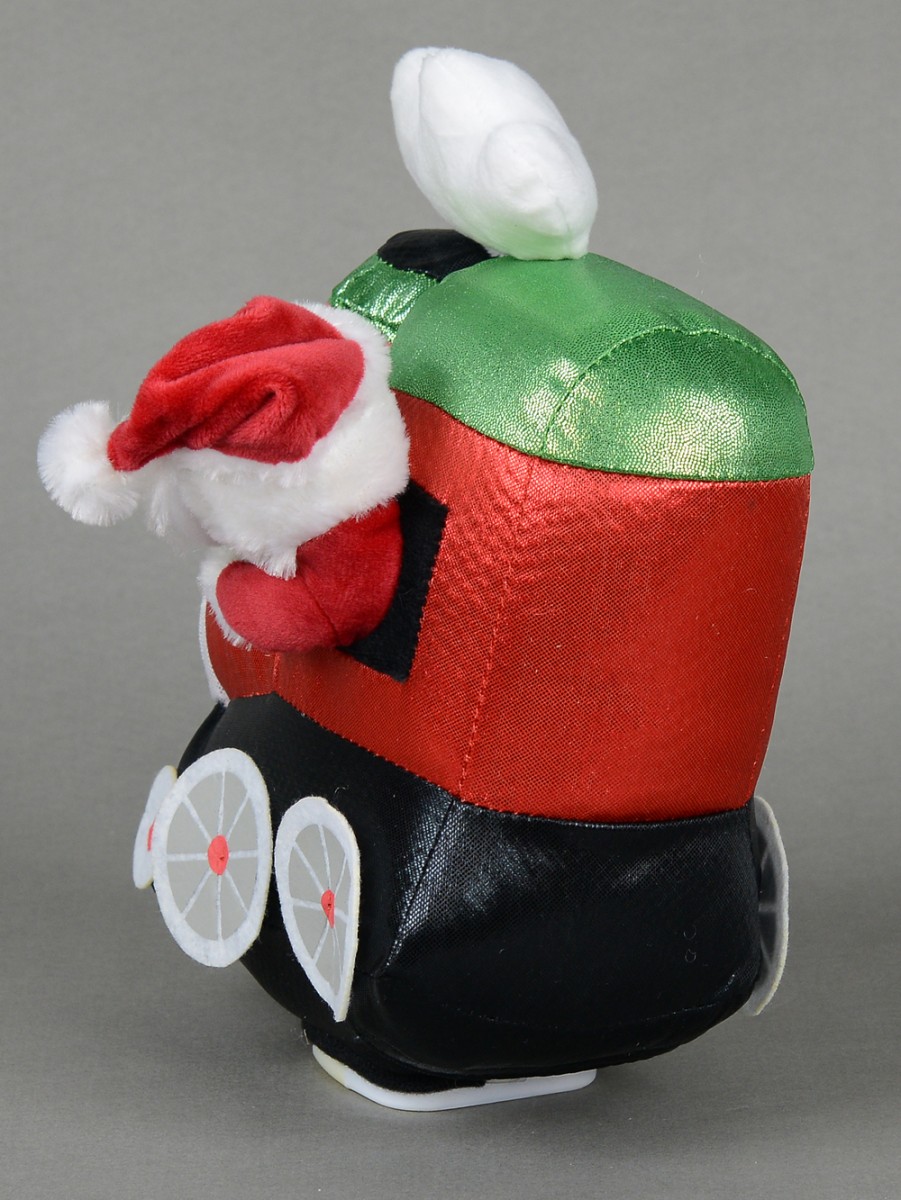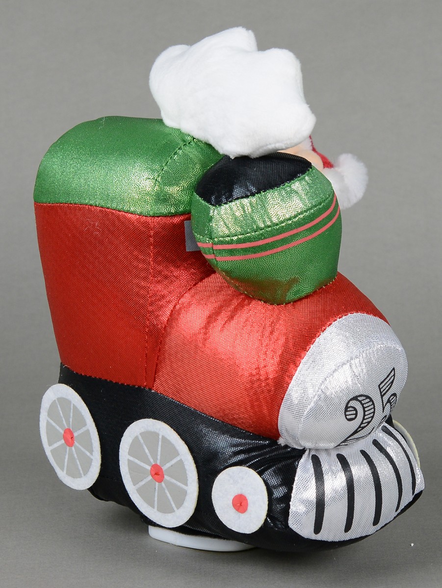 In this Wobbling Christmas Train Locomotive Animation With Santa setting, Santa is seen having a nice time as he rides on a locomotive train probably on his way to deliver some Christmas gifts. This animation features a locomotive train's chimney puffing out a cloud of smoke which is rendered in white colour atop the train. Just by pushing the button marked "G" on Santa's green gloved left hand, the train would wobble to several classic tunes that were popular in the 60s, 70s and 80s. This animated train is powered by two AA batteries which are already included in your order. Please note that it is not recommended for use by children under three years if there's no parental supervision.